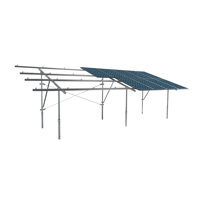 PV -montage met dubbele kolom neemt een symmetrische dubbele kolomstructuur aan en de algehele stijfheid wordt verbeterd door transversale connectoren. De belastingdragende en windbestendige prestaties zijn aanzienlijk beter dan die van een enkele kolom. Het hoofdlichaam is gegalvaniseerd staal- of aluminiumlegering, die geschikt is voor grootspanningsopstelling en het ontwerp van de hoge hoek. De fundering kan worden uitgerust met ingebedde palen of betonnen pijlers. Het is geschikt voor bergachtige en kustgebieden met hoge winddruk of zware sneeuwbelasting, waardoor de stabiliteit van de krachtcentrale gedurende zijn levenscyclus wordt gewaarborgd.