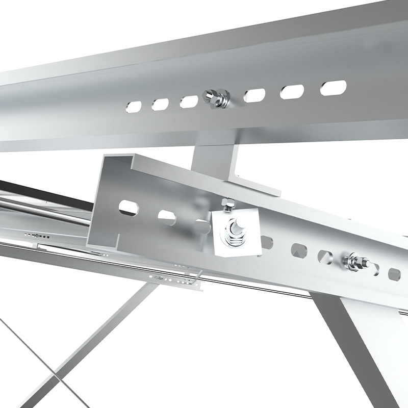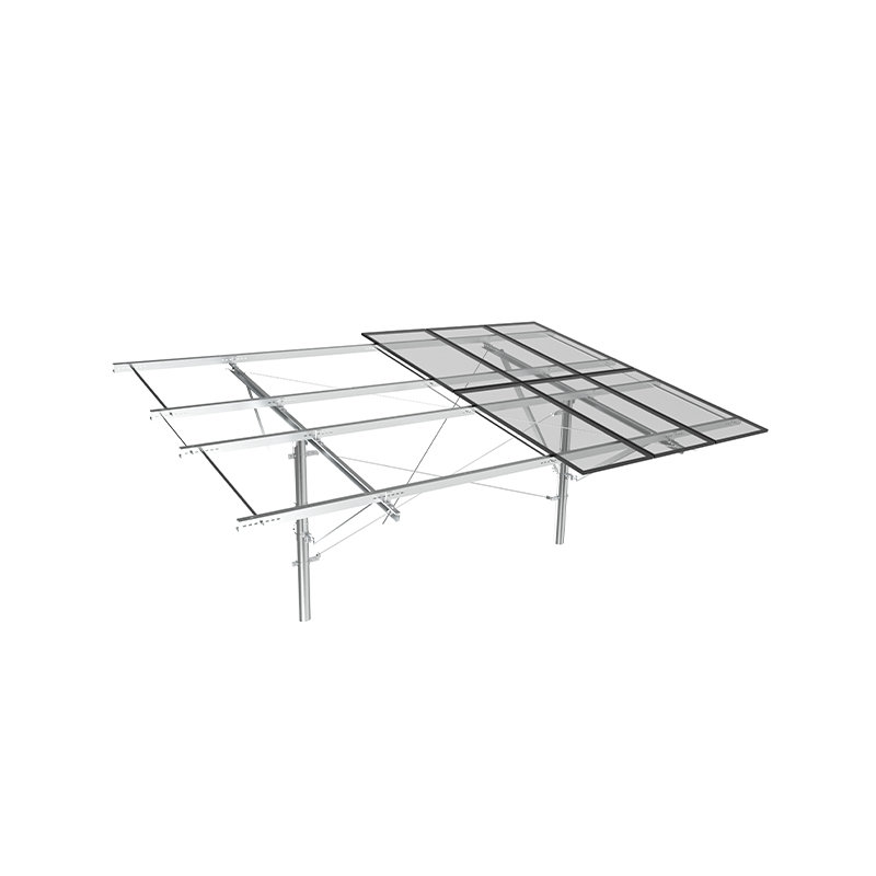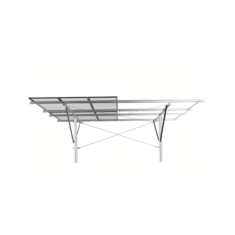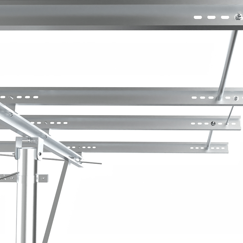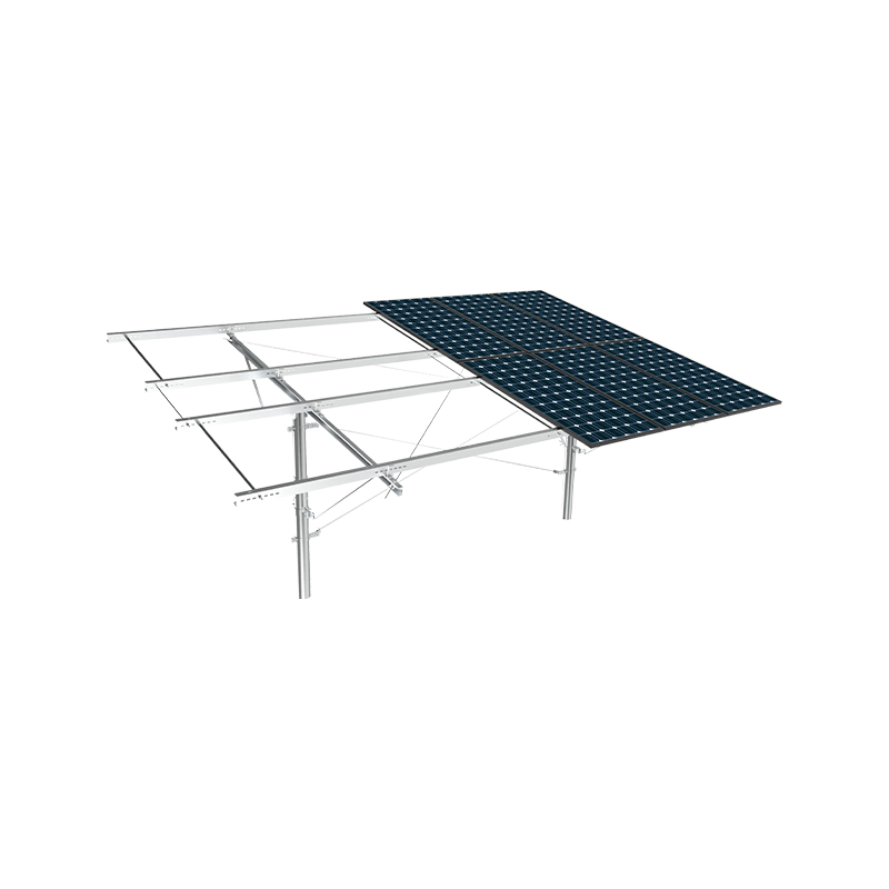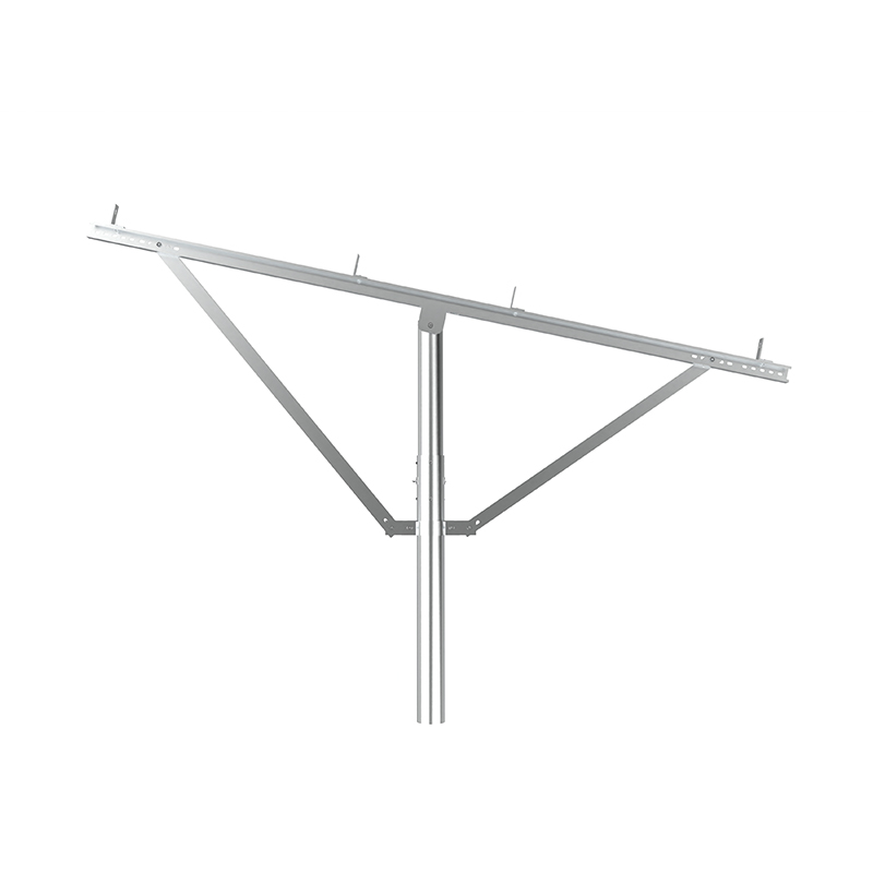 PV -montage met één kolom maakt gebruik van onafhankelijke kolommen als kernondersteuning, met een eenvoudige structuur en economische materialen, geschikt voor lage hellingen of plat terrein. Met sterke corrosieweerstand, en de diagonale brace -versterking verbetert het vermogen om zijwinden te weerstaan. Het is geschikt voor kleine en middelgrote grondstations of gedistribueerde projecten, en is zowel economisch als gemakkelijk te installeren, vooral geschikt voor scènes met uniform licht en lage windbelasting.